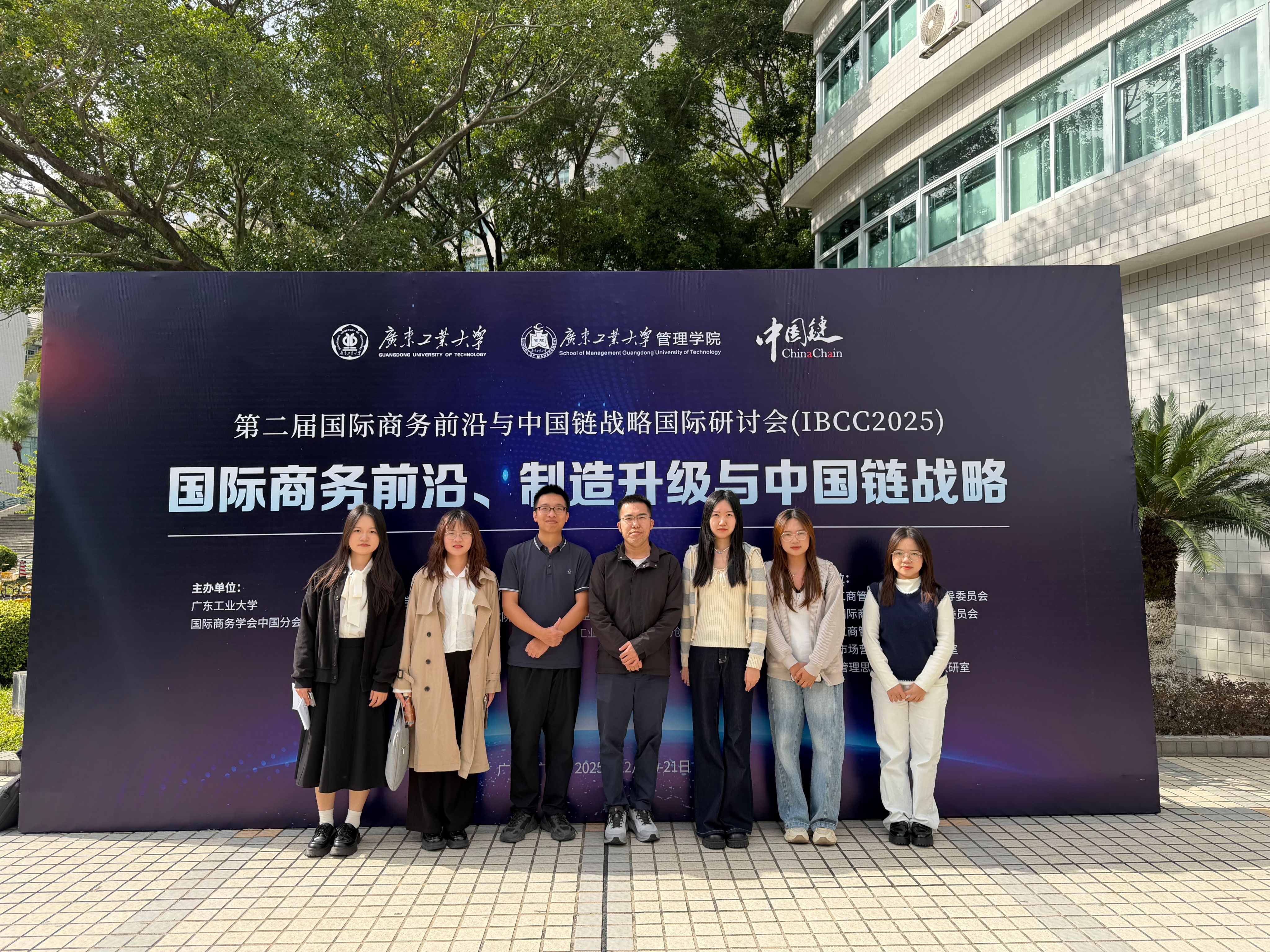 2025年12月20日-21日,第二届国际商务前沿与中国链战略国际研讨会(IBCC 2025)在广州举行,肇庆学院经济与管理学院蔡三希博士、陈金源博士、温可仪博士,以及2025级国际商务硕士研究生陈丽宇、单雯、张可欣和舒阳莉参加了本次会议。会议以“国际商务前沿、制造升级与中国链战略”为主题,围绕国际商务治理、全球产业链重构、数字化转型与中国链发展等前沿议题展开深入研讨,吸引了来自国内外高校和科研机构的专家学者参会交流。