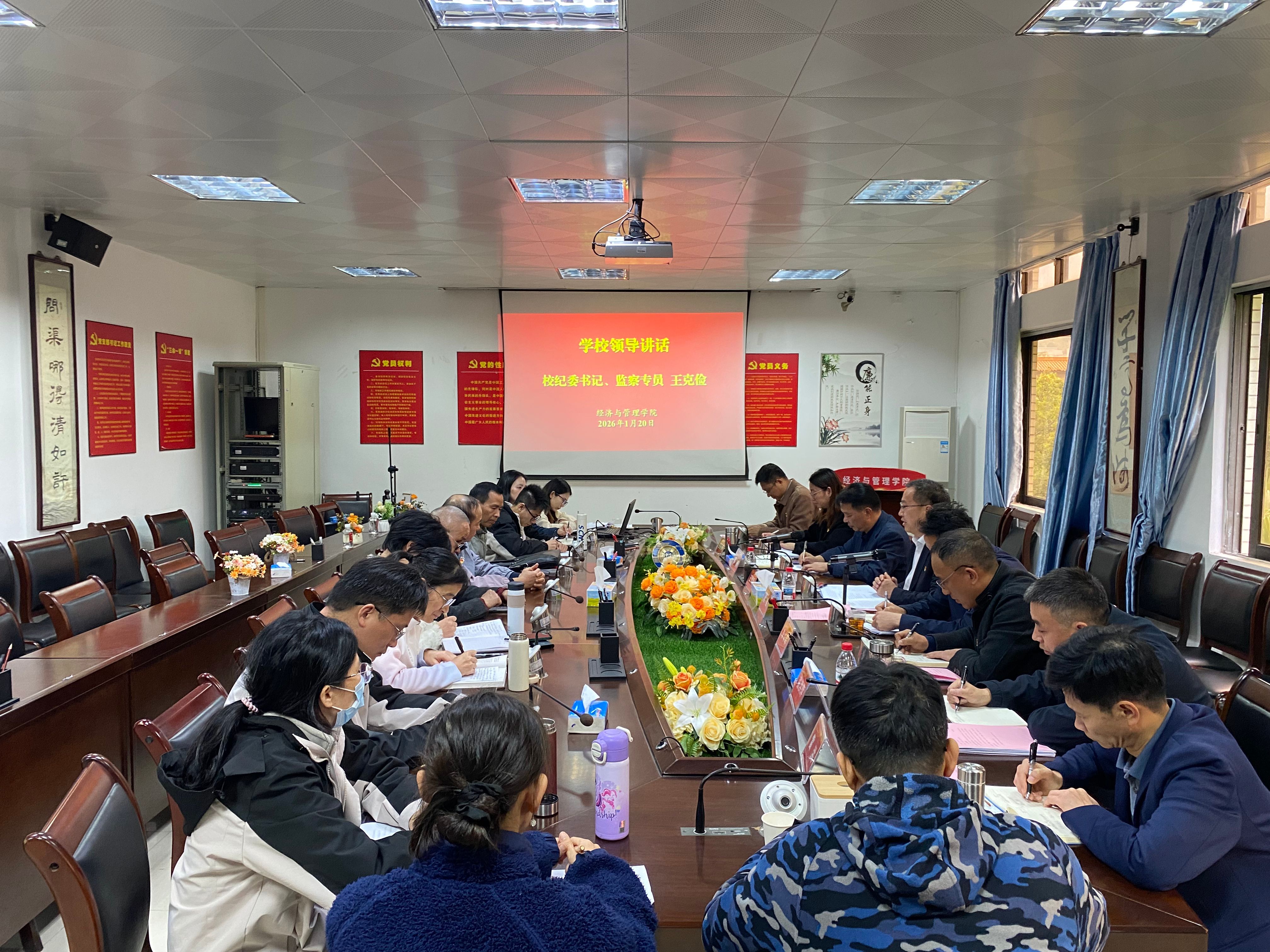 1月20日下午,经济与管理学院党委在501会议室召开2025年度党员领导干部民主生活会。学校纪委书记、监察专员王克俭亲临指导并作讲话,学校督导组吴亮副部长、张洪萍科长到会督导。学院领导班子成员、党政办负责人、专职组织员、各党支部正副书记、教学系主任及专业负责人参加了会议。会议由学院党委书记梁标主持。