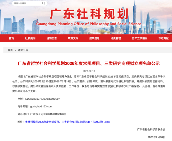 近年来,学院高度重视科研工作,坚持以高水平项目培育为抓手,不断优化科研管理与服务体系,加强青年教师科研能力培养与团队协作建设,持续营造良好的学术氛围。本次省哲学社会科学规划项目拟立项,是学院科研工作取得的又一阶段性成果。学院将以此为契机,进一步推动高质量科研成果产出,提升服务粤港澳大湾区国家战略的能力,为哲学社会科学繁荣发展贡献更大力量。