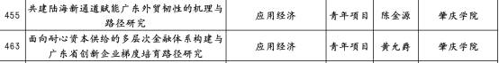 近日,广东省社会科学界联合会公布广东省哲学社会科学规划2026年度常规项目、三类研究专项拟立项名单。学院教师黄允爵博士、陈金源博士申报的课题分别为《面向耐心资本供给的多层次金融体系构建与广东省创新企业梯度培育路径》和《共建陆海新通道赋能广东外贸韧性的机理与路径研究》,成功入选拟立项名单。