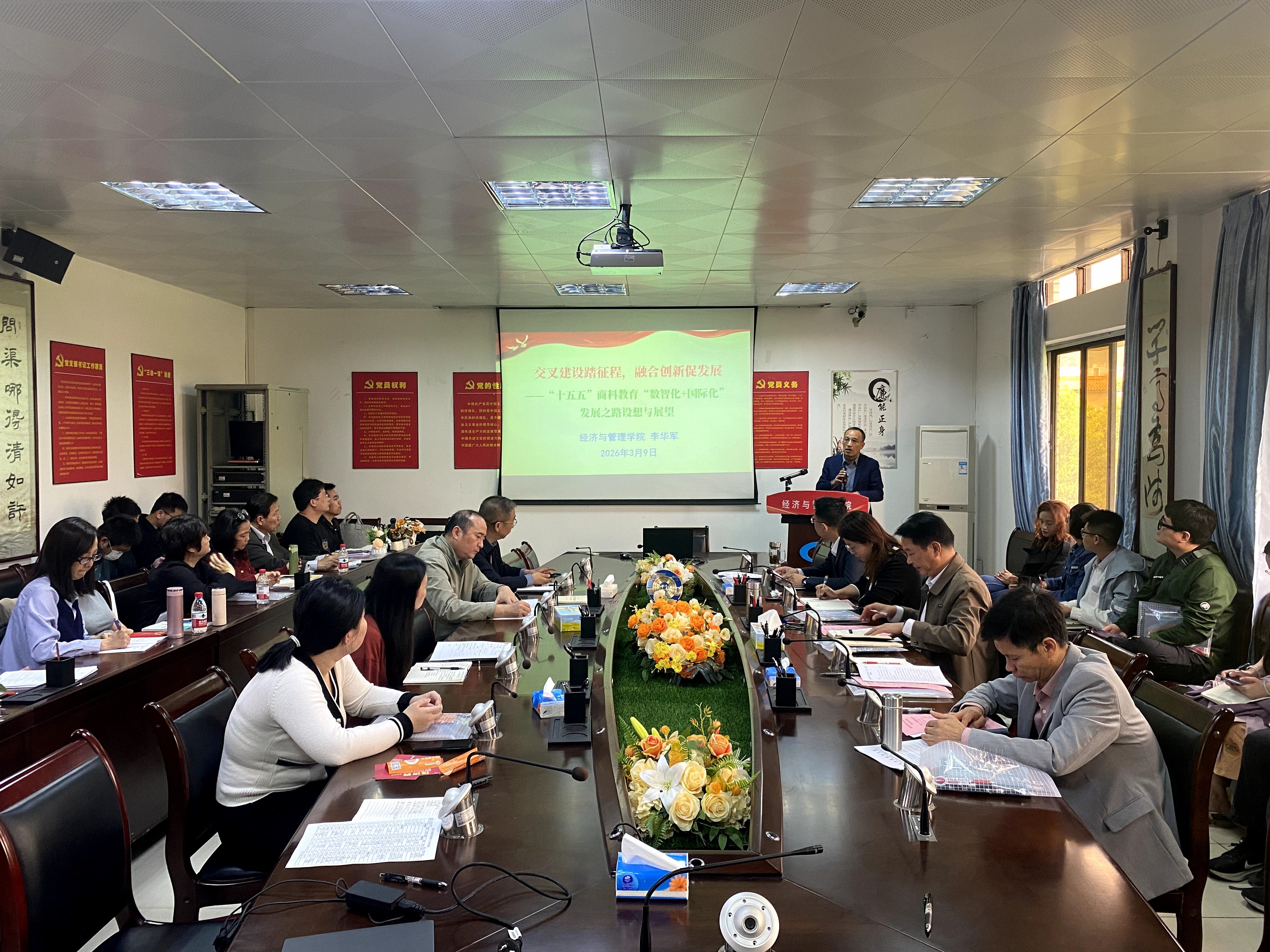 3月9日,经济与管理学院召开学校高质量发展大会分组讨论会,深入贯彻落实学校2026年高质量发展工作大会精神,锚定“数智化+国际化”的发展目标,明确学院高质量发展路径与攻坚方向。全体教职工参加会议,学院党委书记梁标主持会议。