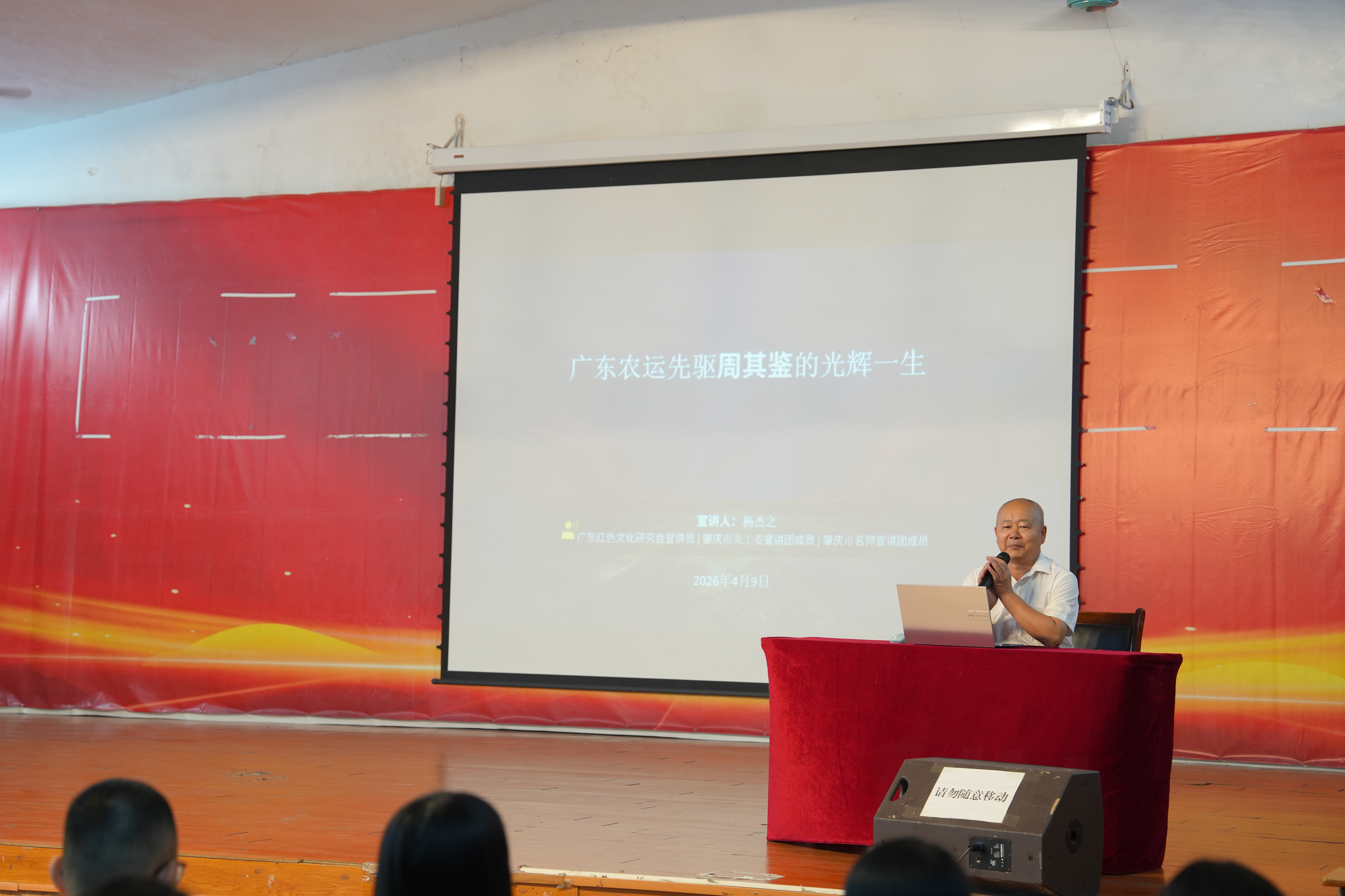 学院特别邀请革命先烈周其鉴的外孙、广东红色文化研究会宣讲员、肇庆市关工委宣讲团成员、肇庆市名师宣讲团成员杨杰之老师亲临讲课。杨杰之老师以“广东农运先驱周其鉴的光辉一生”为主题,从广宁革命老区的红色底蕴为切入点,用真挚的感情、珍贵的图片和详细的史料,全面再现了周其鉴同志从成长轨迹、求学经历,到投身学生运动、加入中国共产党,再到组织农会、创建农军、建立广宁基层党组织、艰苦斗争,为革命事业鞠躬尽瘁、英勇献身的光辉历程。在座学生深受鼓舞,认为此次讲座不仅能够深入了解周其鉴同志的光辉一生、革命斗争史,更接受了一次深刻的红色洗礼和思想淬炼,纷纷表示要以周其鉴同志为学习榜样,坚定理想信念,努力成长为堪当民族复兴重任的时代新人。