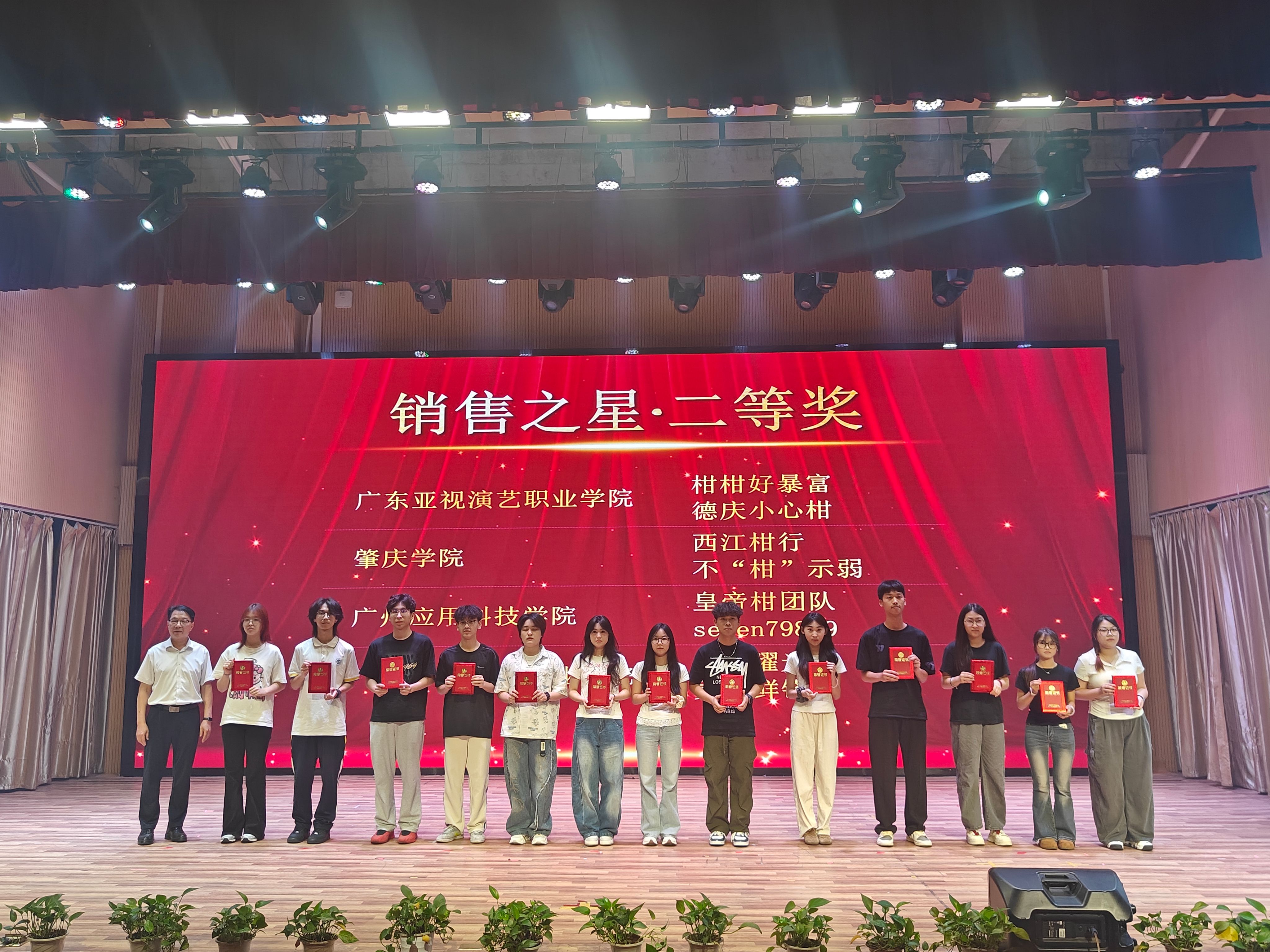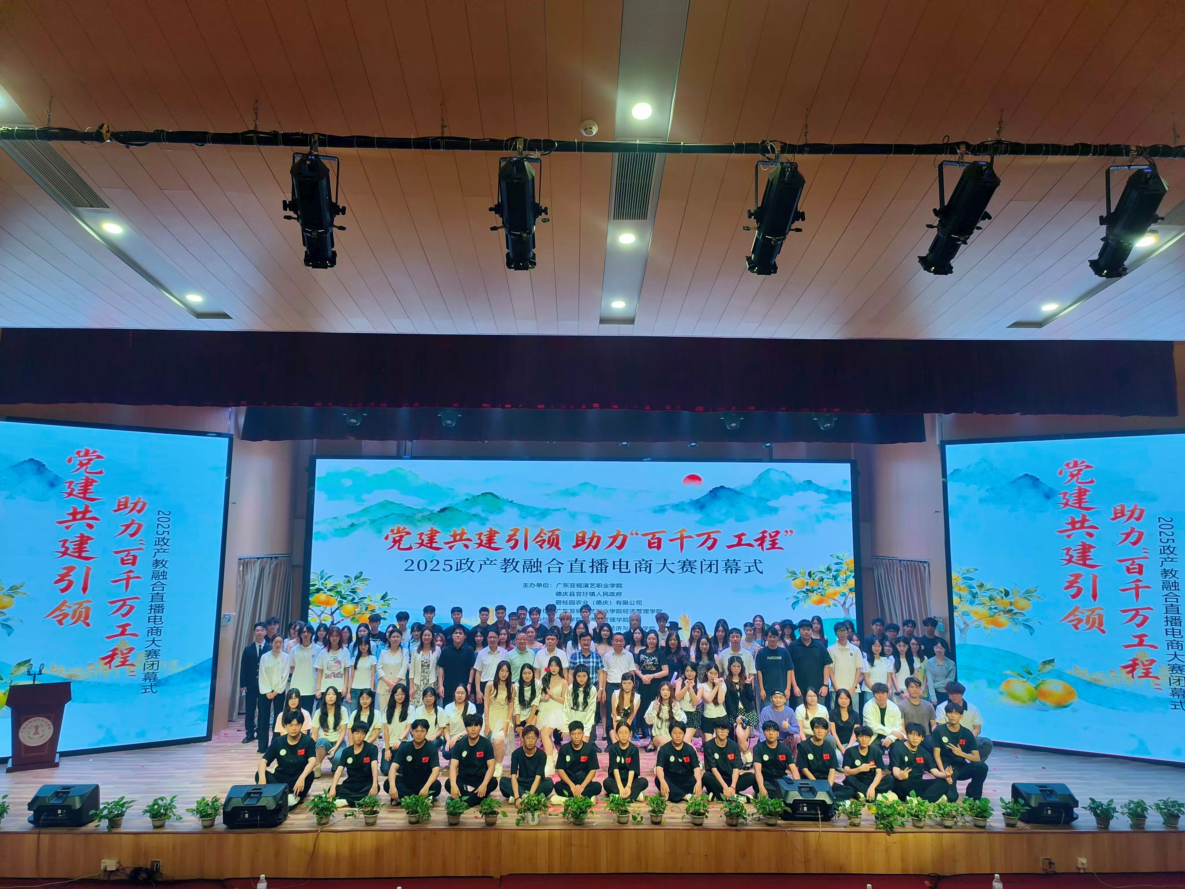 2026年4月16日,经济与管理学院、德庆县官圩镇人民政府、碧桂园农业(德庆)有限公司、广东亚视演艺职业学院经济管理学院、广州应用科技学院经济与管理学院、广东肇庆航空职业学院国际商贸学院联合举办的“党建共建引领、助力百千万工程”2025年政产教融合电商直播大赛,在广东亚视演艺职业学院圆满闭幕。经管学院党委书记梁标、副书记巫燕娜及获奖师生代表等出席闭幕式。