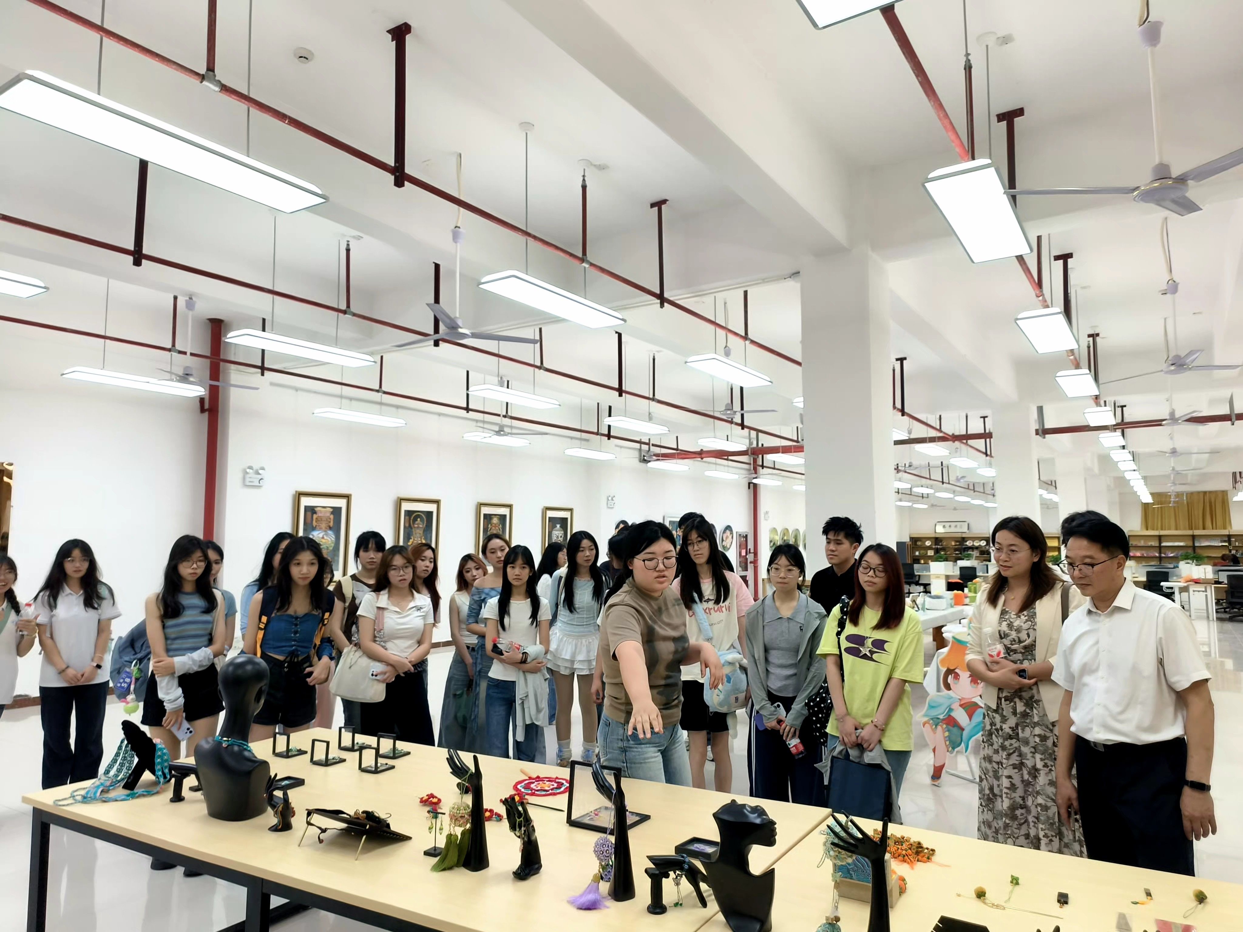 该校经管学院副院长柳青全程陪同研习交流。师生们首先参观了该校艺术设计学院美育作品展,展览内容丰富多元,涵盖文创设计、视觉艺术、创意手作、数字媒体设计等多元优秀作品,在场师生在沉浸式观摩学习中积淀审美素养,切实发挥研习赋能成长作用。