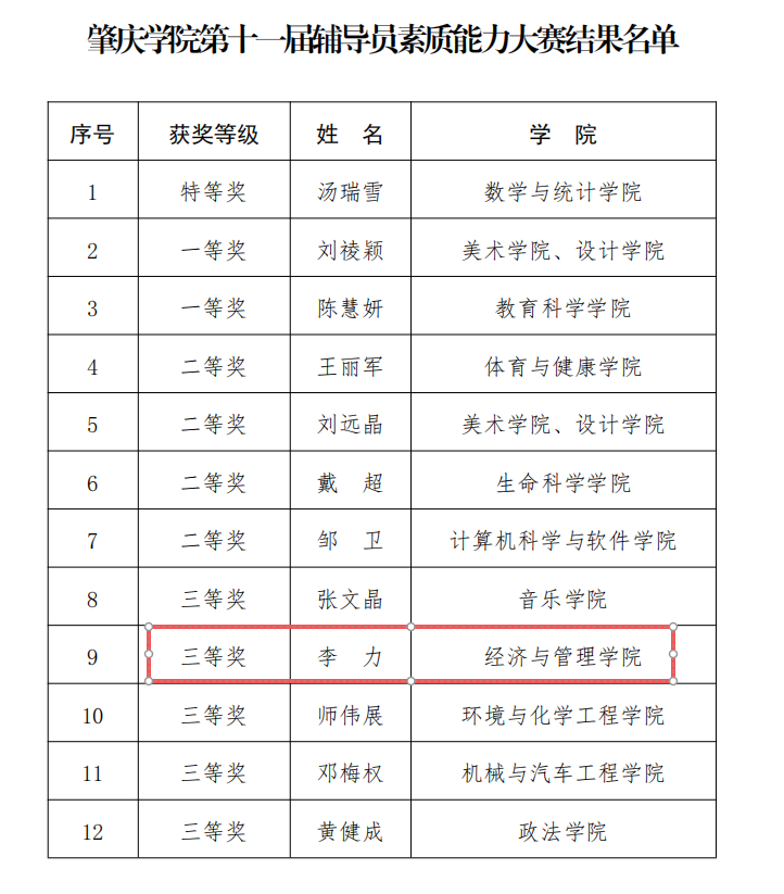 恭喜李力老师获得肇庆学院第十一届辅导员素质能力大赛三等奖