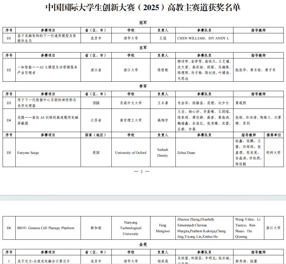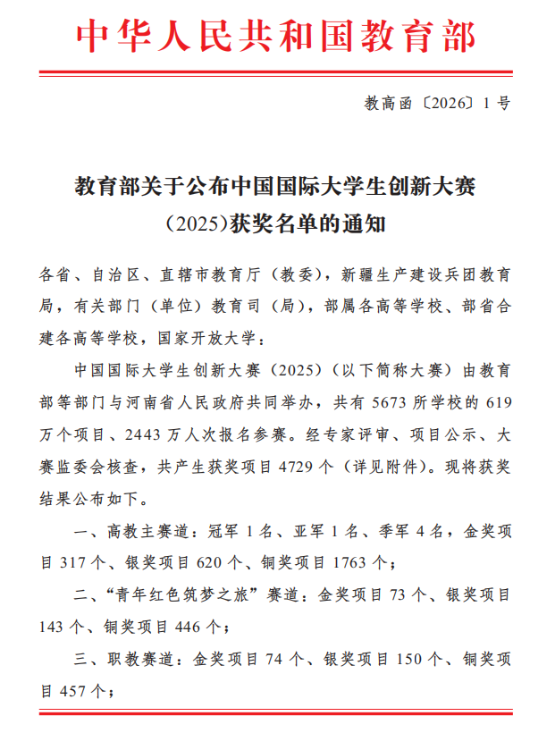 恭喜陈卉老师所在队伍在中国国际大学生创新大赛(2025)高教主赛道中获金奖
